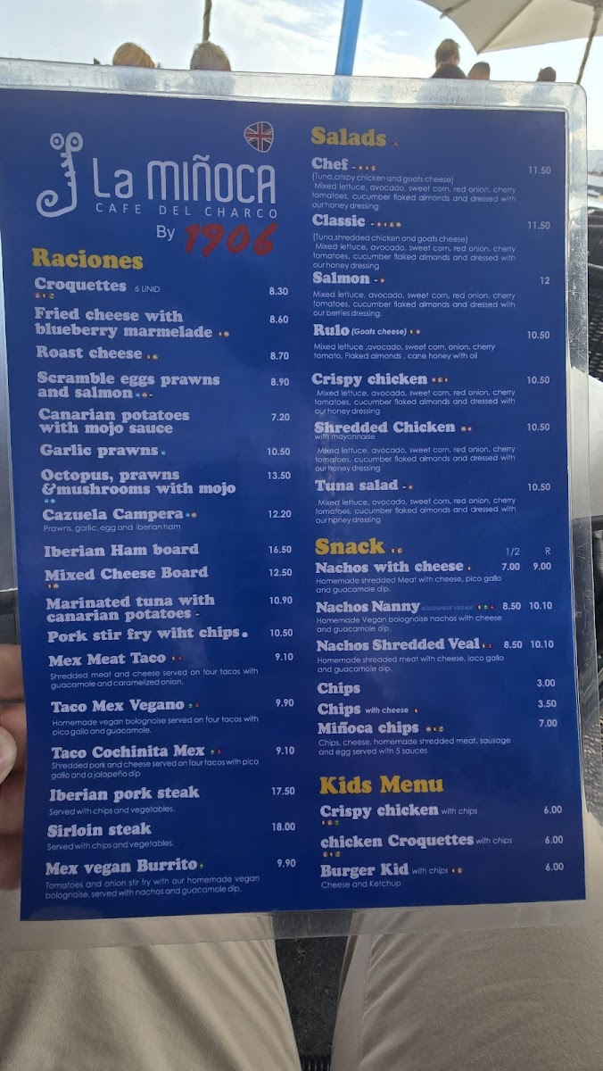 La Minoca Cafe del Charco, nestled along the serene Charco San Gines in Arrecife, is an enchanting spot where the beauty of the harbor meets delightful Spanish cuisine. The inviting atmosphere is complemented by friendly, attentive staff eager to enhance your dining experience. Guests rave about the exceptional food, with standout dishes like fresh octopus and flavorful tapas stealing the show. The cafe offers an array of reasonably priced snack options, including the famous arrepaq and club sandwich, perfect for a casual lunch. Enjoy your meal al fresco, ideally at sunset, as the stunning view elevates your visit. Each meal feels like a trip to culinary paradise, with patrons feeling truly embraced by the local culture. Whether you're indulging in nachos or sipping on a refreshing beer, La Minoca Cafe del Charco promises a memorable dining experience on the picturesque island of Lanzarote.
